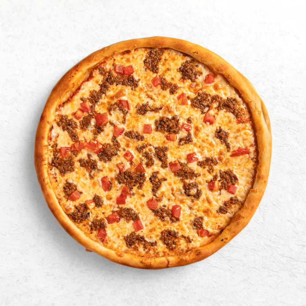 Томатный соус, говяжий фарш, помидоры, сыр моцарелла