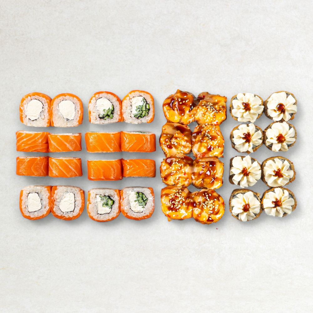 32 ролла + Coca-cola 1 л. в подарок Филадельфия - 8 шт Филадельфия с огурцом - 8 шт Яссай темпура с курицей - 8 шт Итальяно темпура - 8 шт