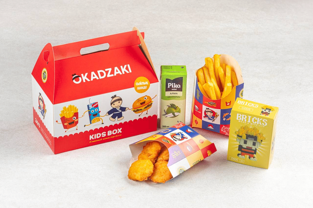 Наггетсы, фри, сок, кетчуп, игрушка.