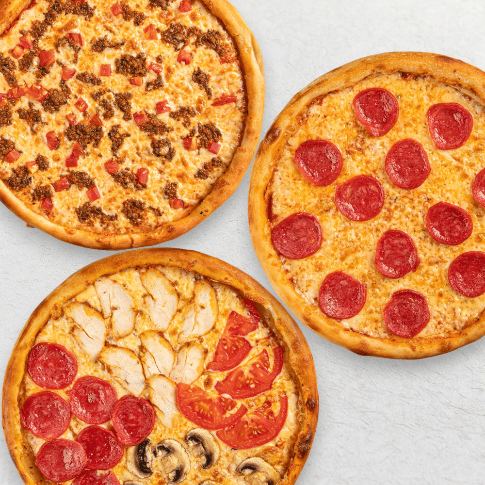 Выгодное комбо из пицц: болоньезе, 4 сезона, пицца пепперони. Coca-cola 1л в подарок
