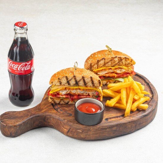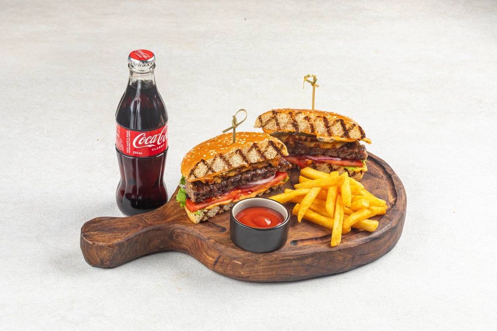 Фирменный бургер+фри+кетчуп+Coca-cola 0.25л