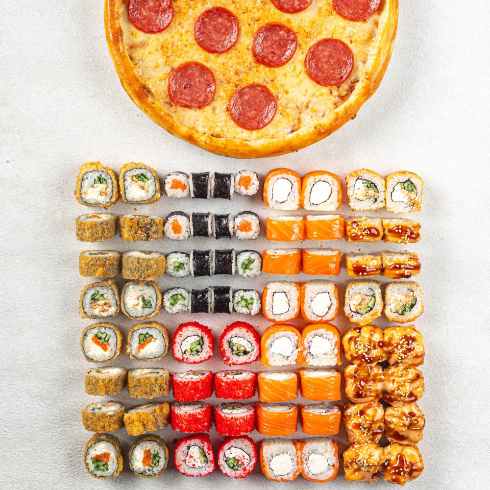Сет «Алматы » - 40 шт + пицца «Пепперони» + 1л Coca-cola в подарок
