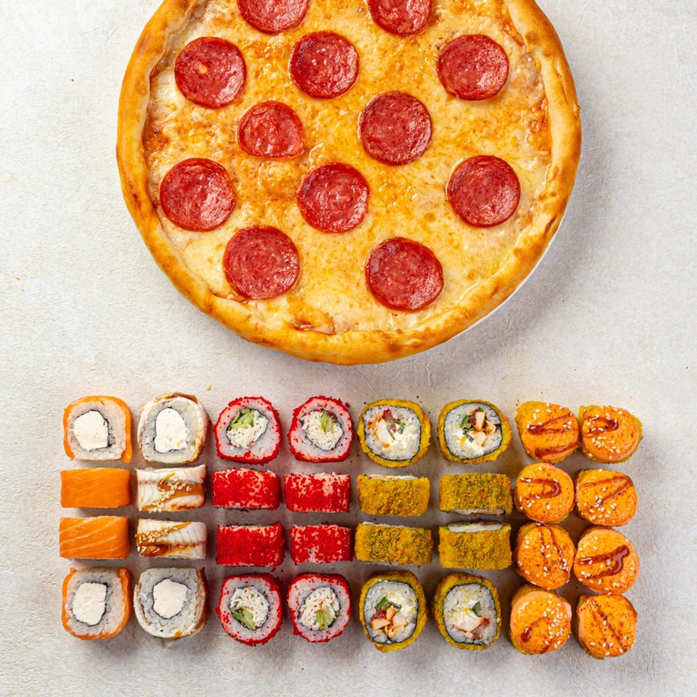 Сет «Алматы » - 40 шт + пицца «Пепперони» + 1л Coca-cola в подарок