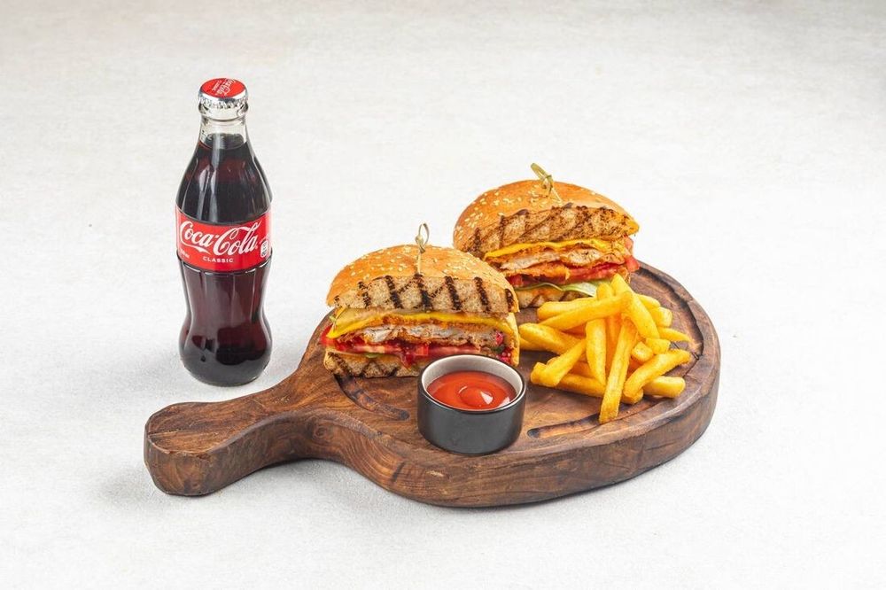 Фирменный бургер+фри+кетчуп+Coca-cola 0.25л