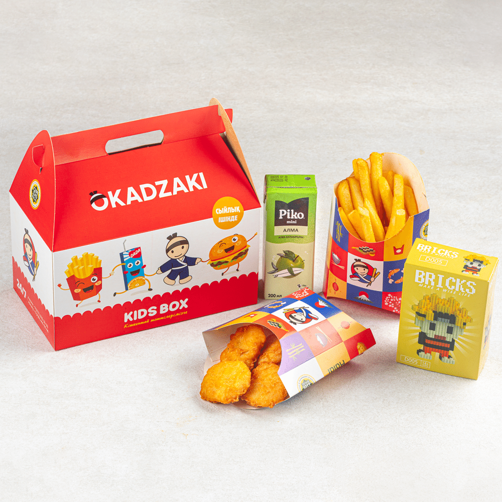 Наггетсы, фри, детский сок, игрушка
