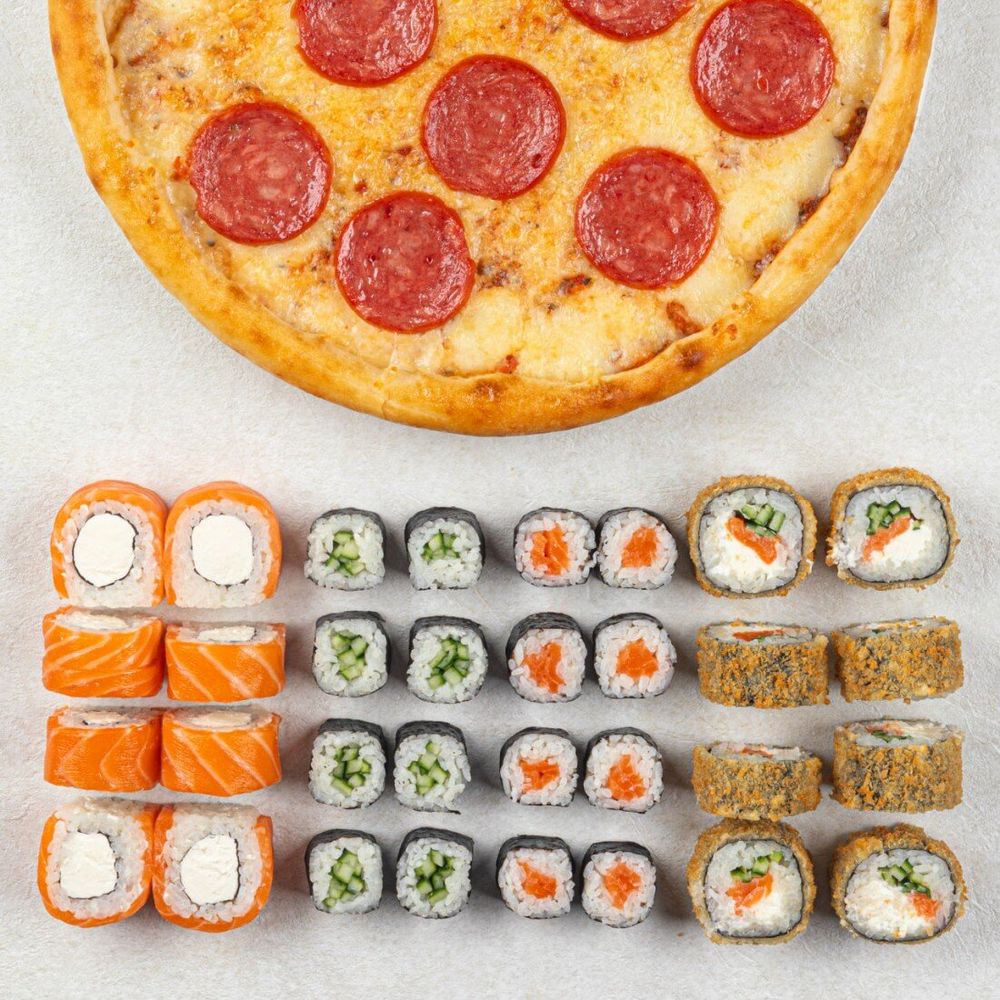 Сет «Алматы » - 40 шт + пицца «Пепперони» + 1л Coca-cola в подарок