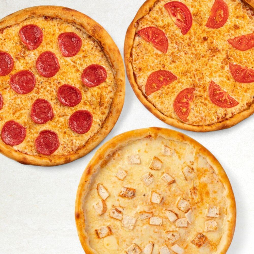 Пицца «Пепперони» (30 см), пицца «Маргарита» (30 см), пицца «Куриная в сливочном соусе» (30 см), Coca-cola (1 л)